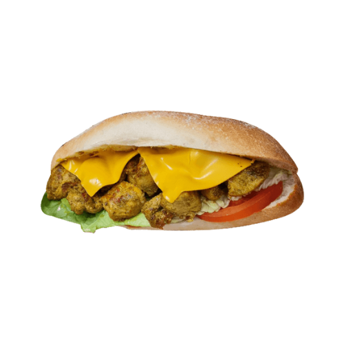 Poulet Curry, cheddar, salade, tomates, oignons, sauce au choix