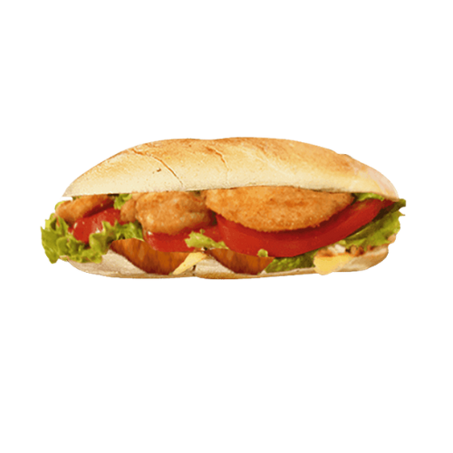 Escalope de poulet, cheddar, salade, tomates, oignons, sauce au choix