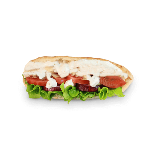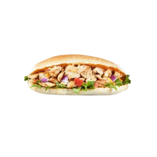 Poulet, cheddar, salade, tomates, oignons, sauce au choix