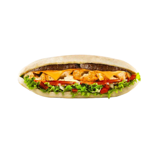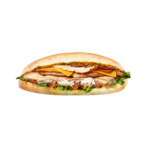 Filet chicken, cheddar, salade, tomates, oignons, sauce au choix